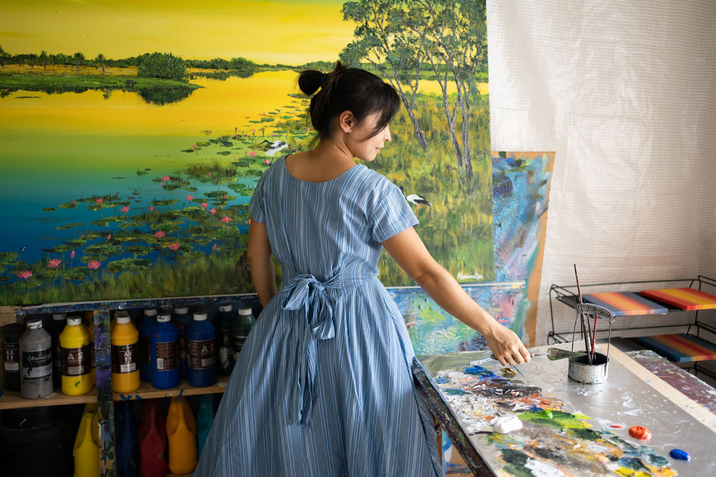 Hi, I’m Michiko — or just Michi — a Japanese-born artist living in Australia. My paintings are inspired by the landscapes, textures, and moods I’ve encountered through travel and everyday life — from serene beaches and cascading waterfalls to ancient rock formations and vibrant bushlands.