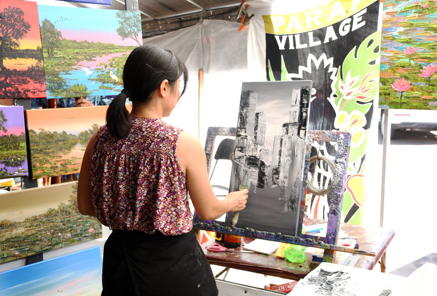 Hi ! I’m Michi — an artist, mum, and nature-lover. My work is all about texture, light, and a sense of place. I’ve attended markets across Australia and now create from my home studio, surrounded by family and endless inspiration.